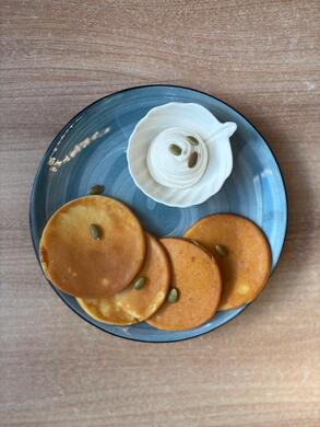 слоеное тесто, яблоки, корица, изюм, фундук, мороженое, мята, сироп на выбор, мята.