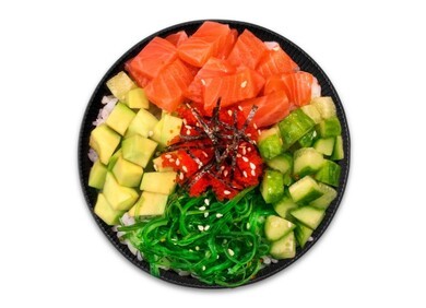 рис, огурец, чука, томаты черри, авокадо, дайкон, соус чили сладкий, творожный сыр, чипсы нори, кинза